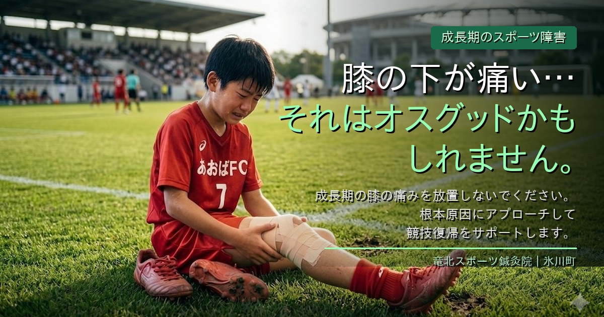 オスグッド病とは、成長期(10〜15歳前後)に多く見られる膝のスポーツ障害です。